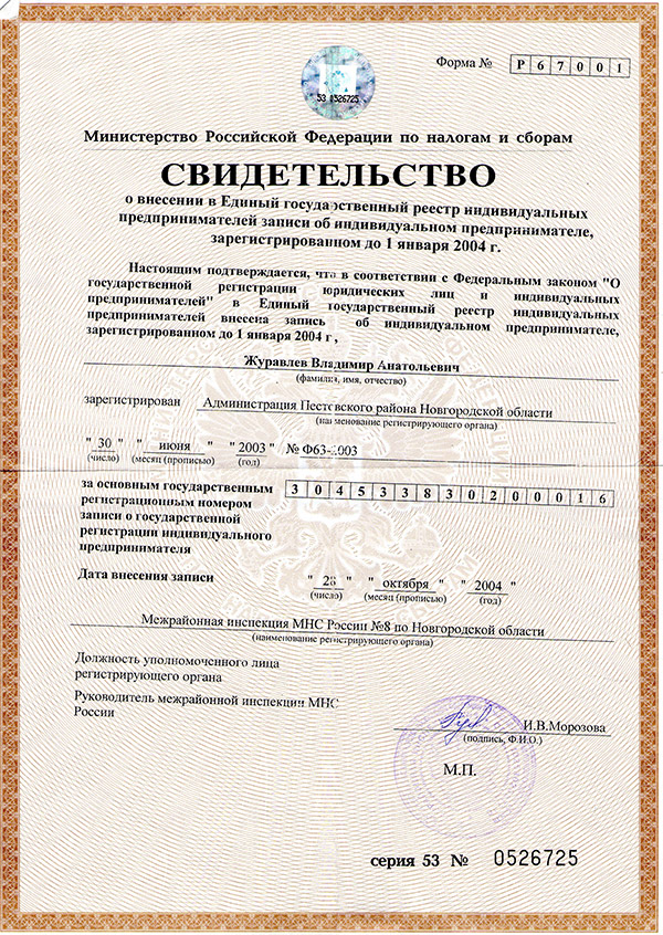 В связи с расширением действующего предприятия, произошла реорганизация индивидуальной предпринимательской дейстельности ИП Журавлев В.А. в общество с ограниченной ответственнойстью «Зодчество-53»