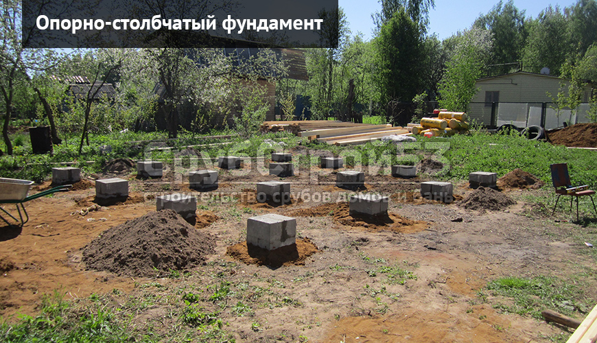 Важным условием монтажа такой основы является одновременная закладка фундамента и строительство постройки. Иными словами, опорно-столбчатый фундамент нужно сразу нагружать строго по оси. Контролировать точность работы можно с помощью отвеса уровня. Для изготовления опор используются бетонные блоки, которые устанавливаются в песчано-цементную стяжку.