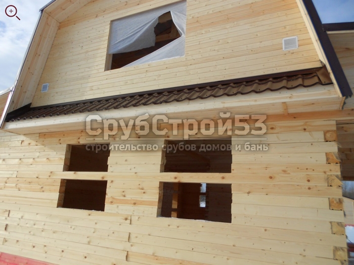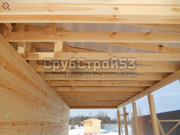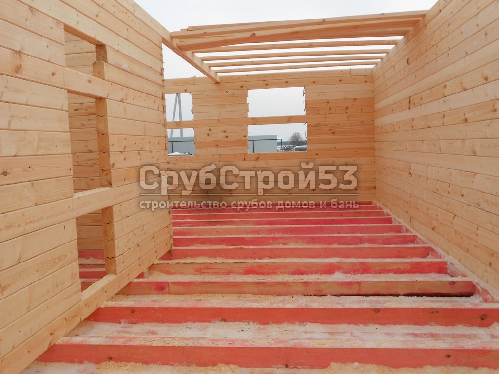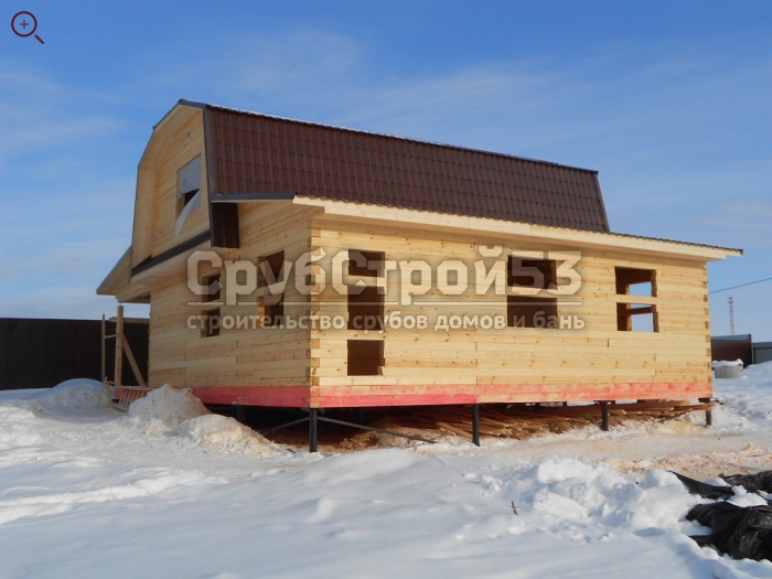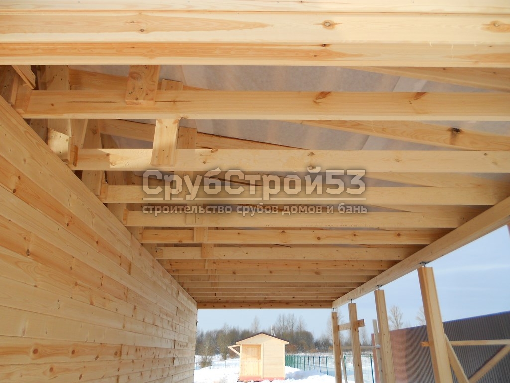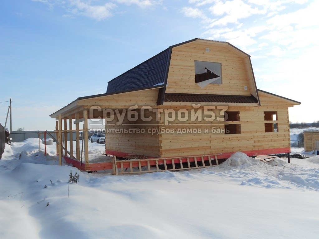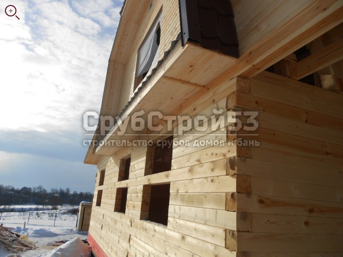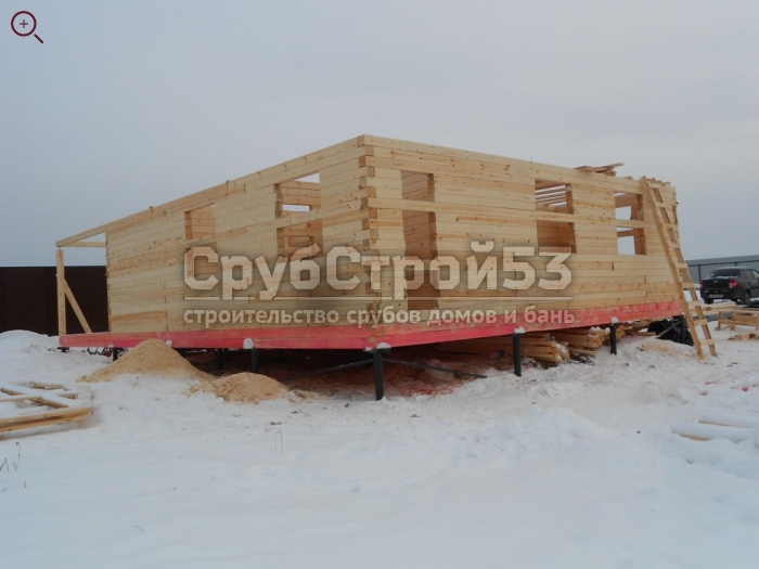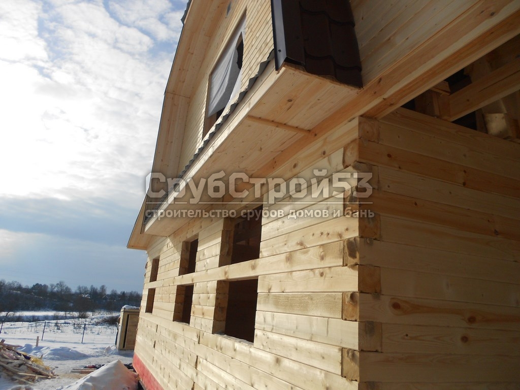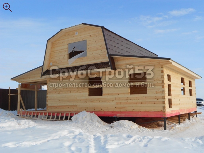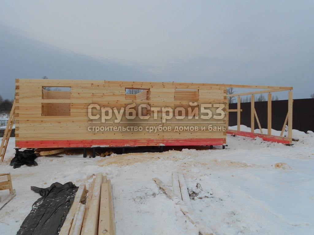 Сруб дома общими размерами 12,5х9,0 (9,0х9,0 из профилированного бруса 150х150 и открытый навес 3,50х9,0) построен в Новгородской обл., г.Сольцы