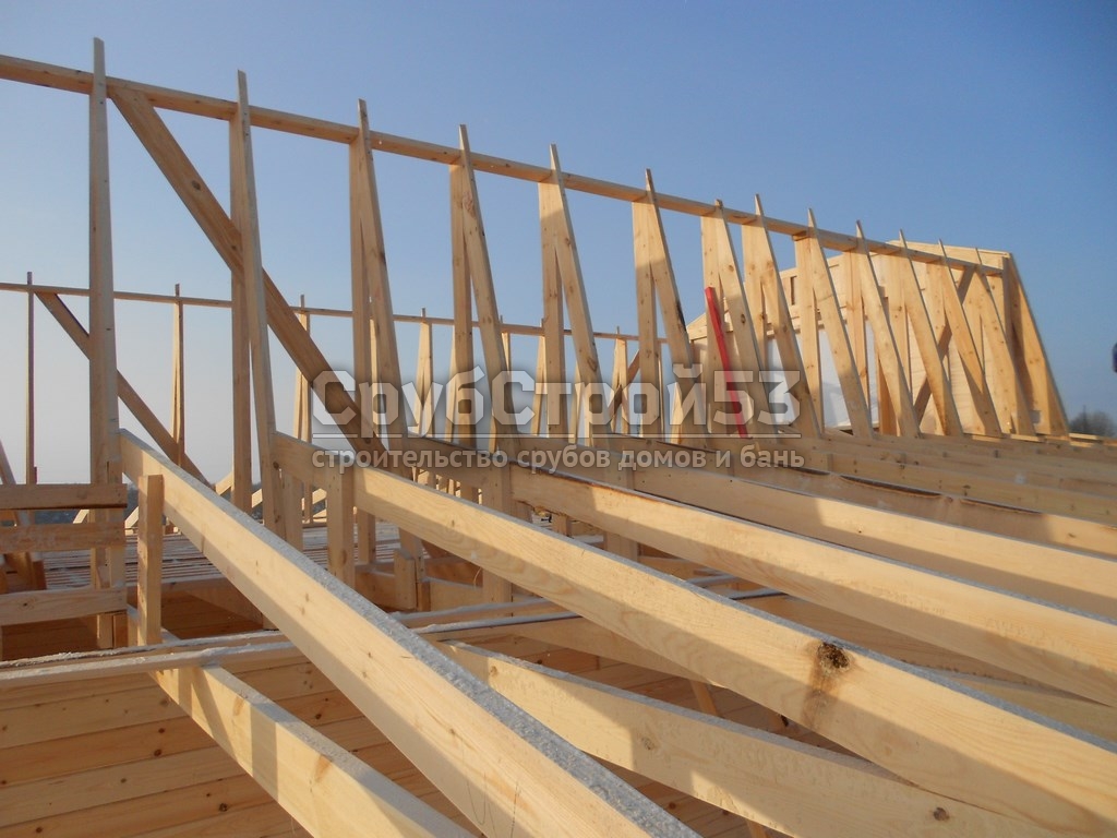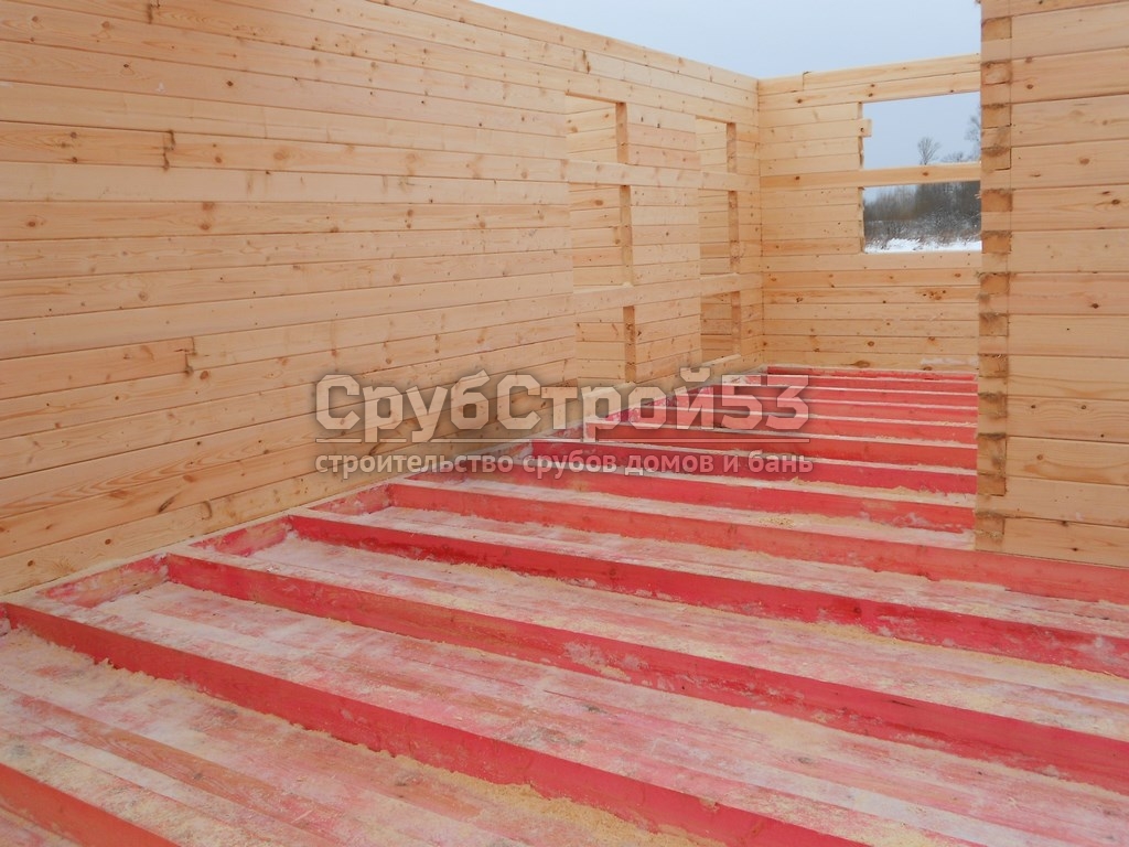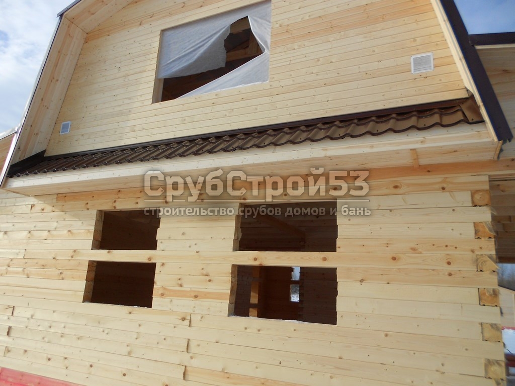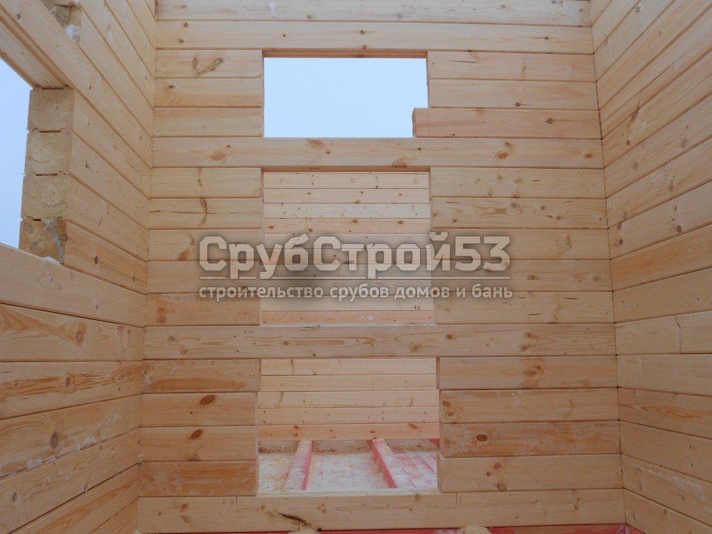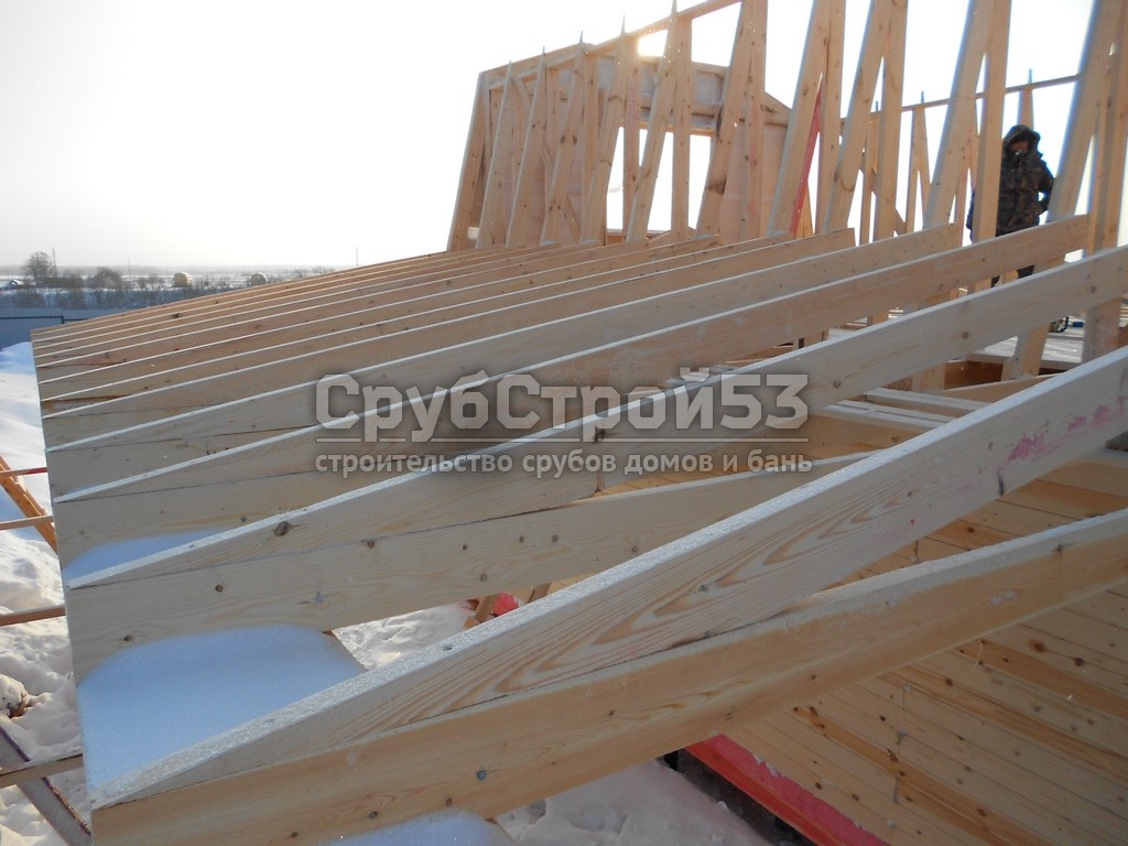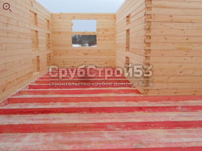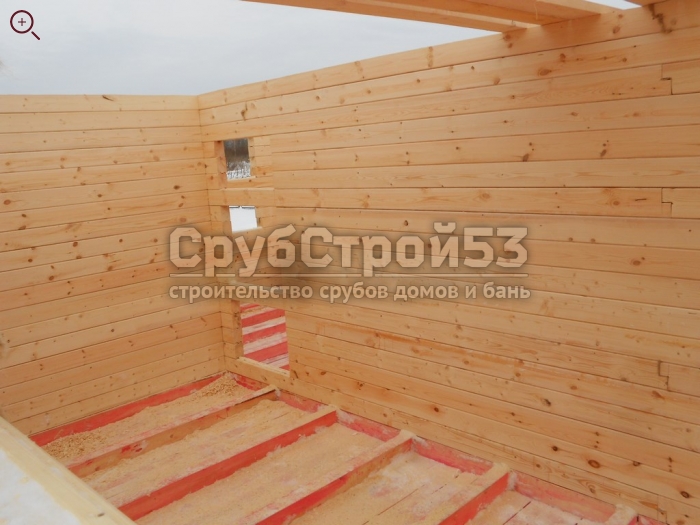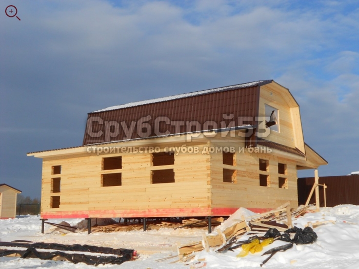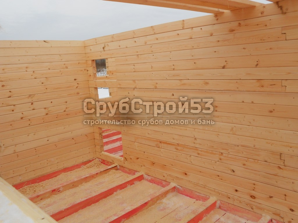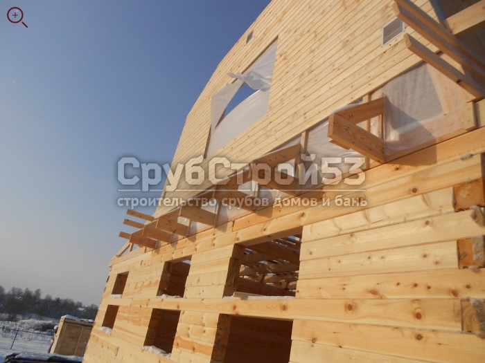 Сруб дома общими размерами 12,5х9,0 (9,0х9,0 из профилированного бруса 150х150 и открытый навес 3,50х9,0) построен в Новгородской обл., г.Сольцы