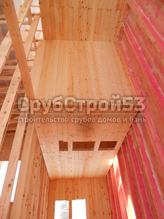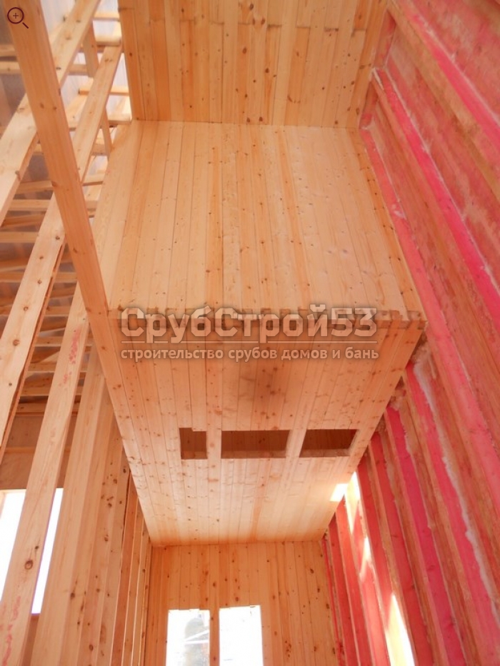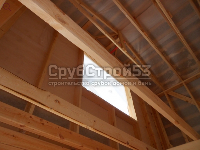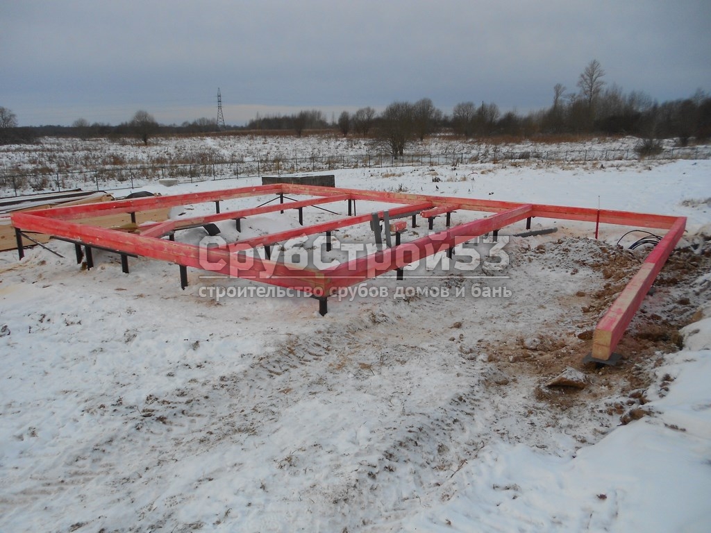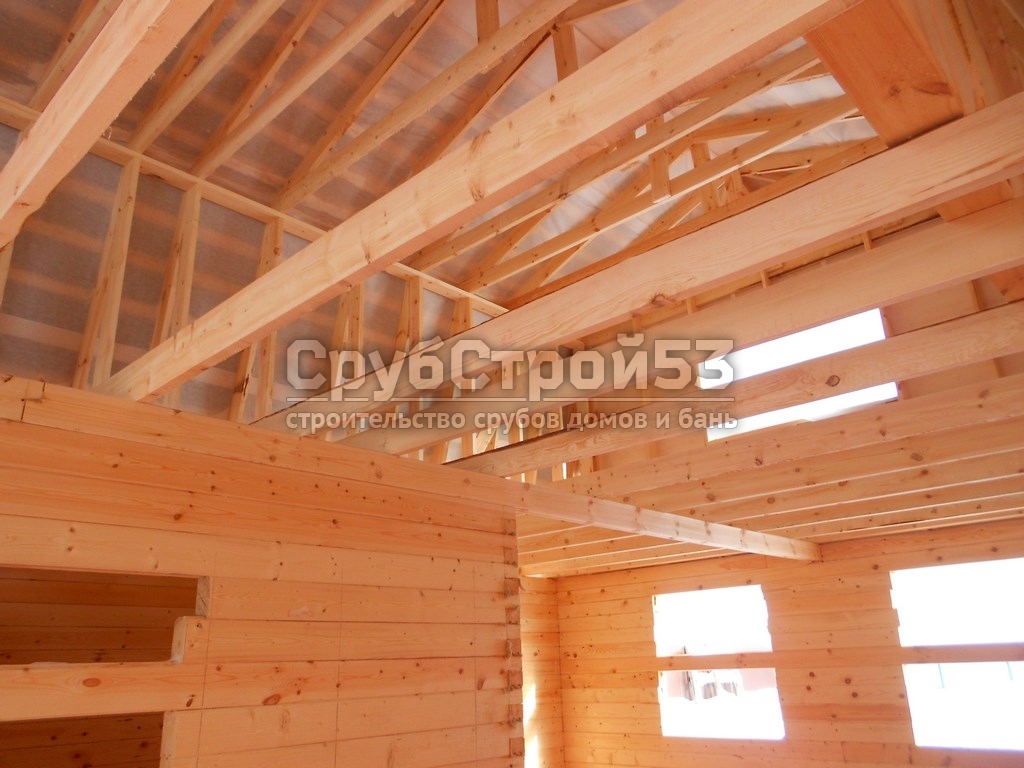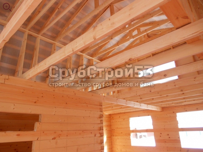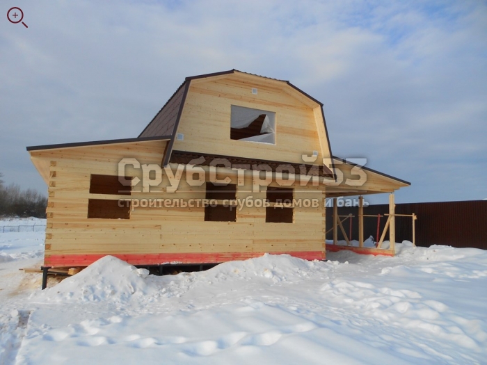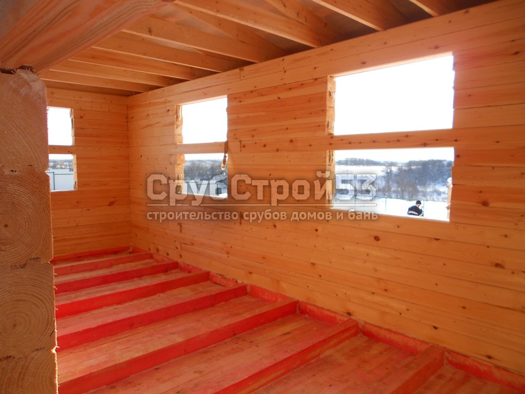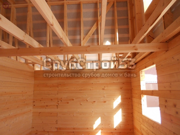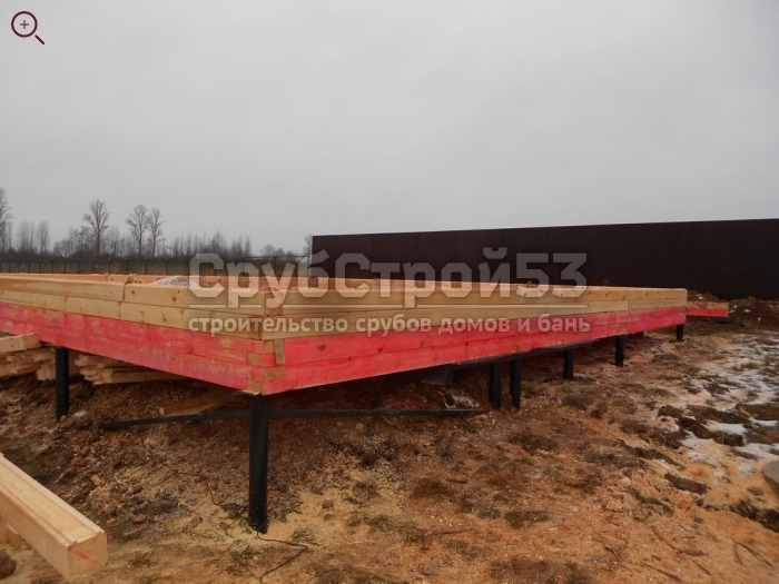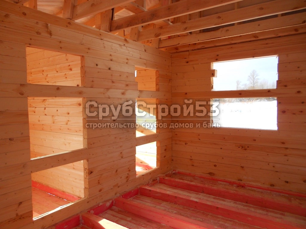 Сруб дома общими размерами 12,5х9,0 (9,0х9,0 из профилированного бруса 150х150 и открытый навес 3,50х9,0) построен в Новгородской обл., г.Сольцы