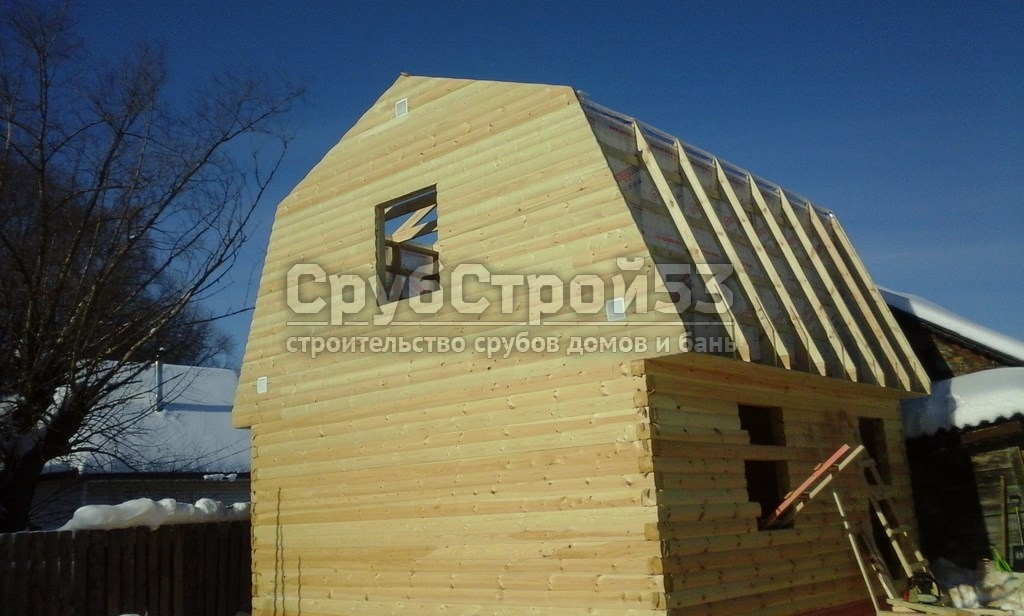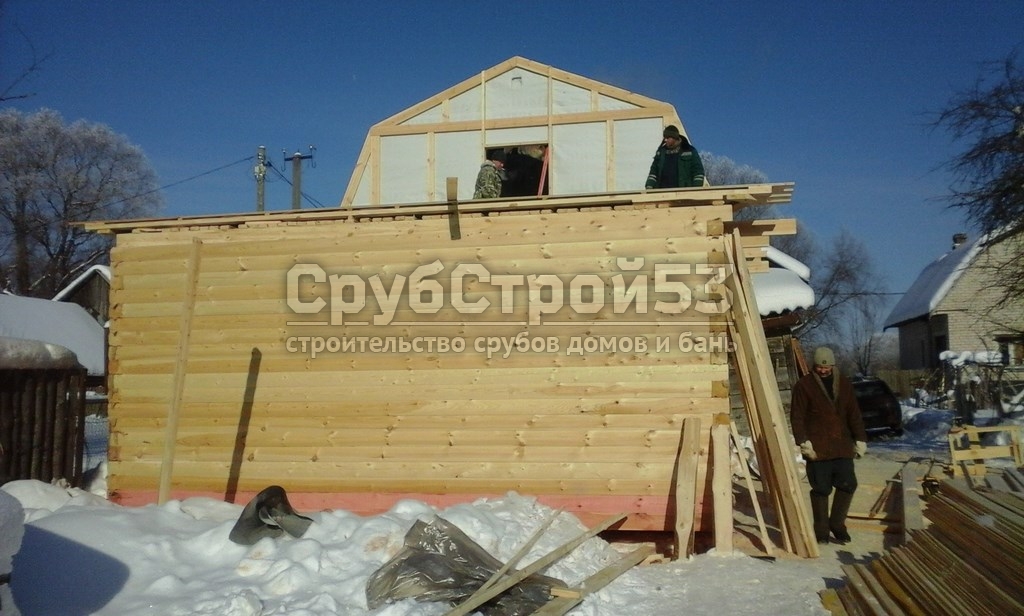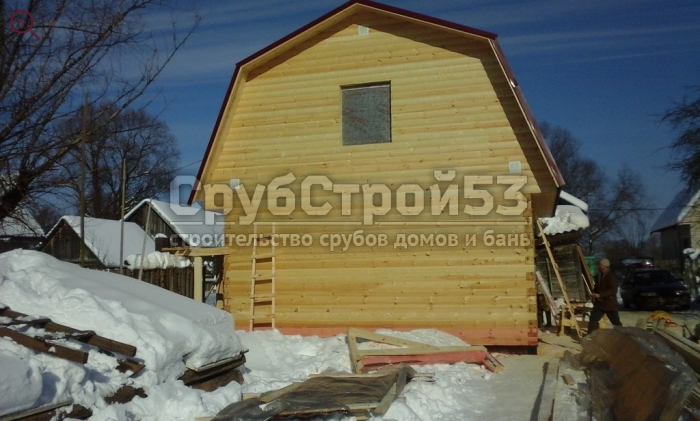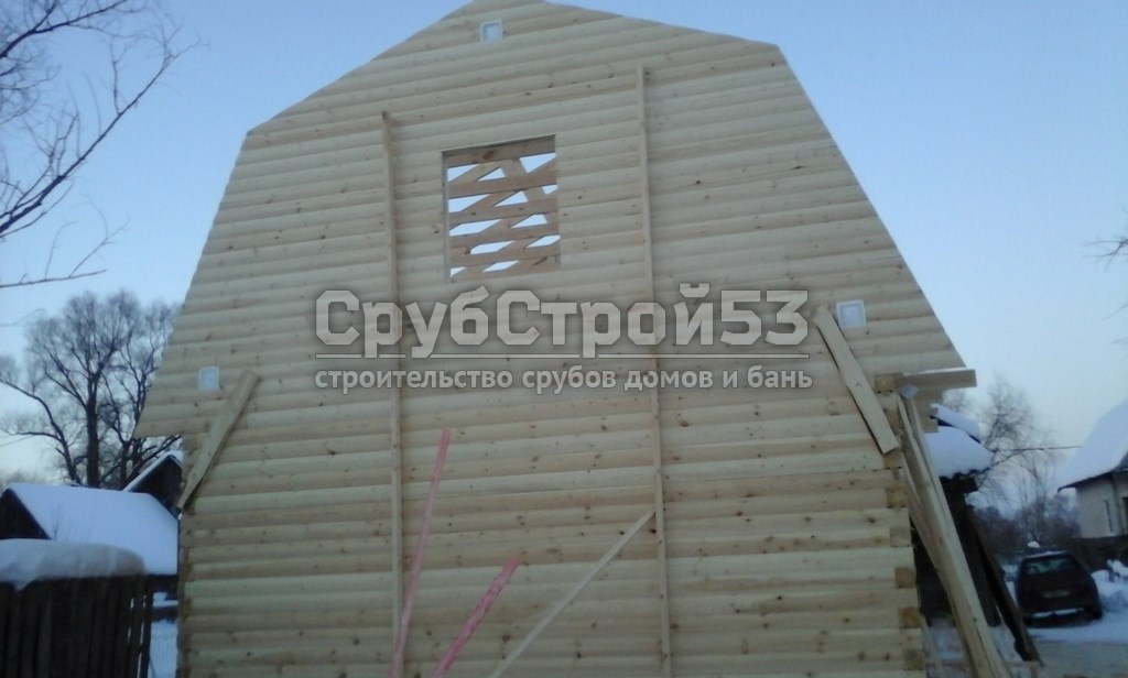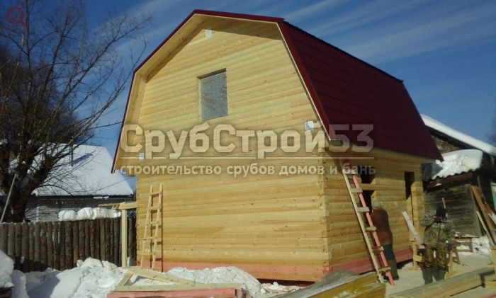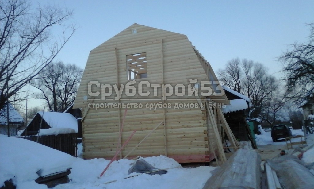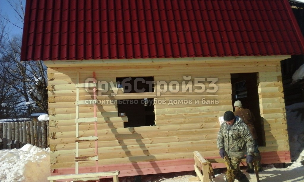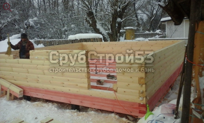 Сруб бани 6×6 м. из профилированного бруса (овал) камерной сушки 150×150 построен в Новгородской обл., Новгородский р-н, д. Холынья