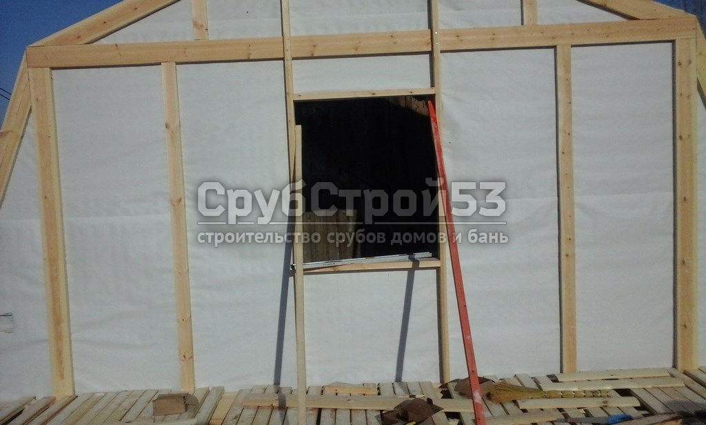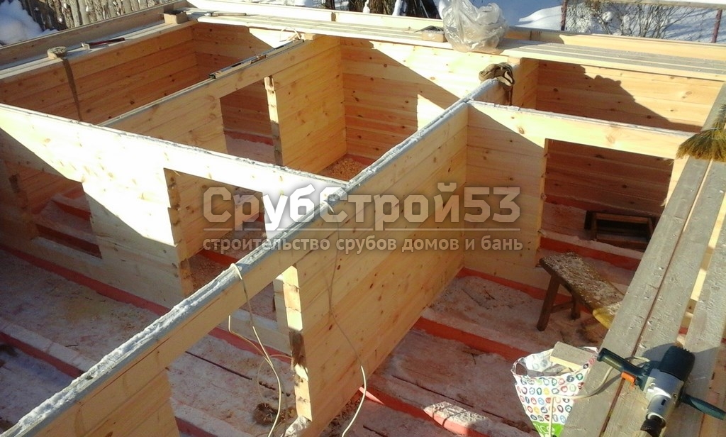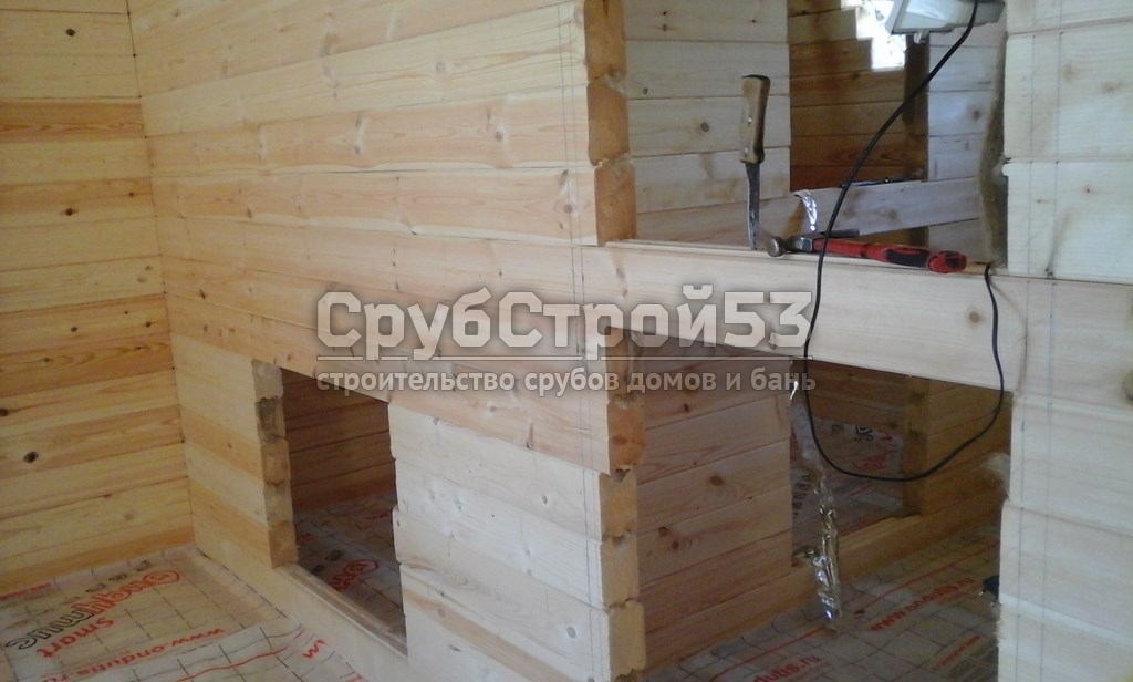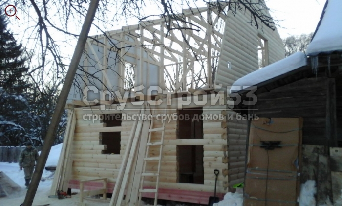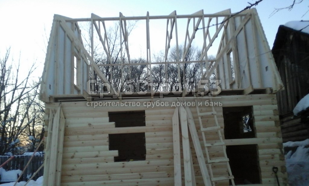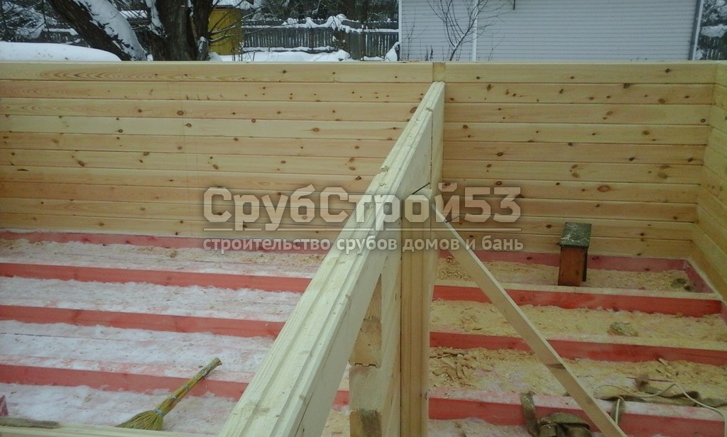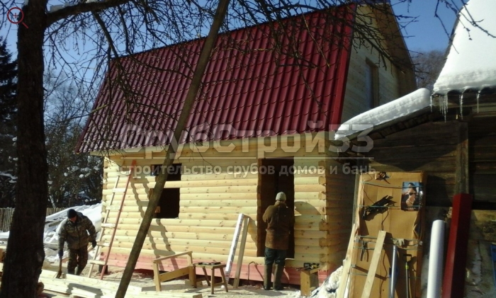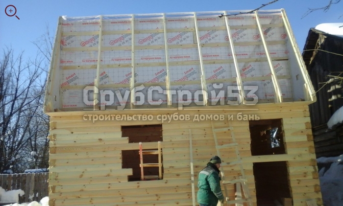 Сруб бани 6×6 м. из профилированного бруса (овал) камерной сушки 150×150 построен в Новгородской обл., Новгородский р-н, д. Холынья