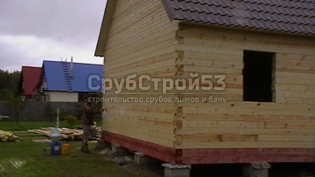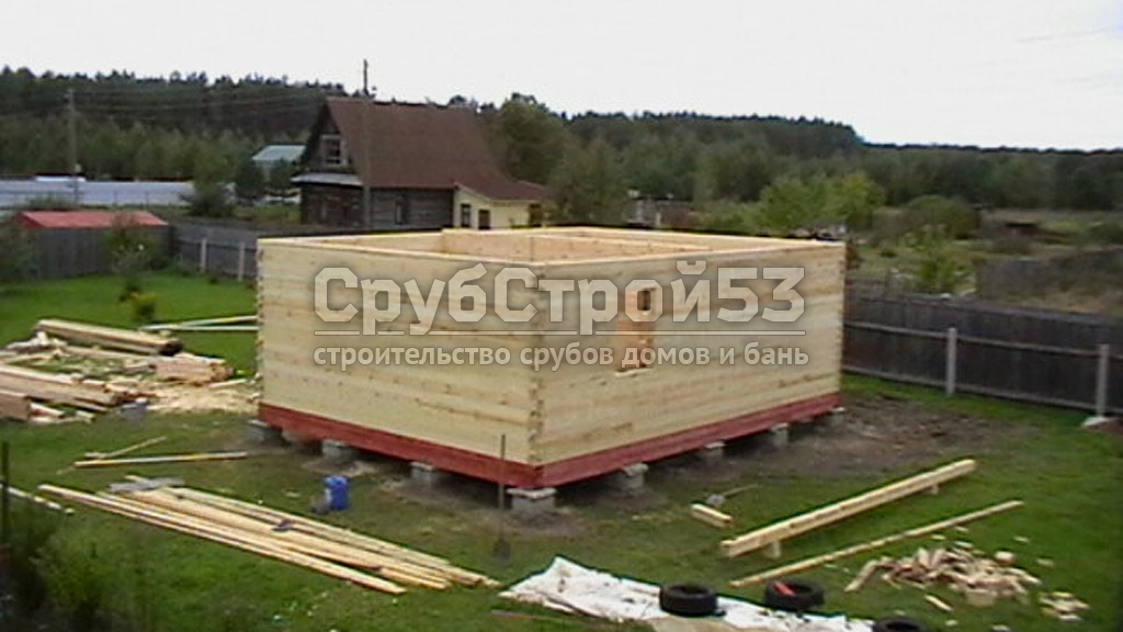Сруб дома 6х8 м. из профилированного бруса 100х150. Построен: Вологодская область, Кадуйский район, д. Нижнее