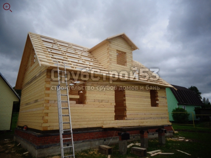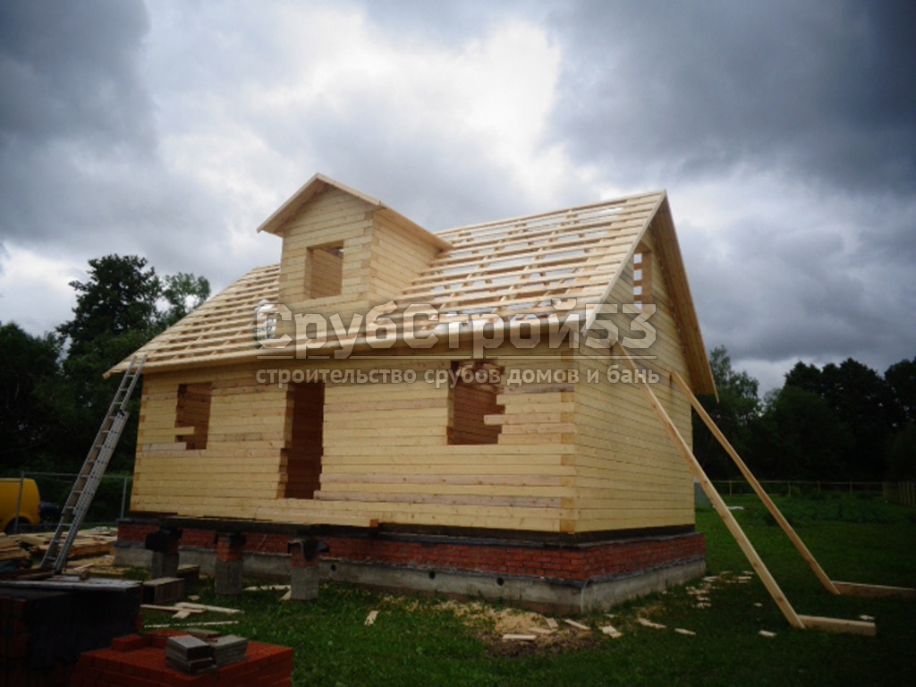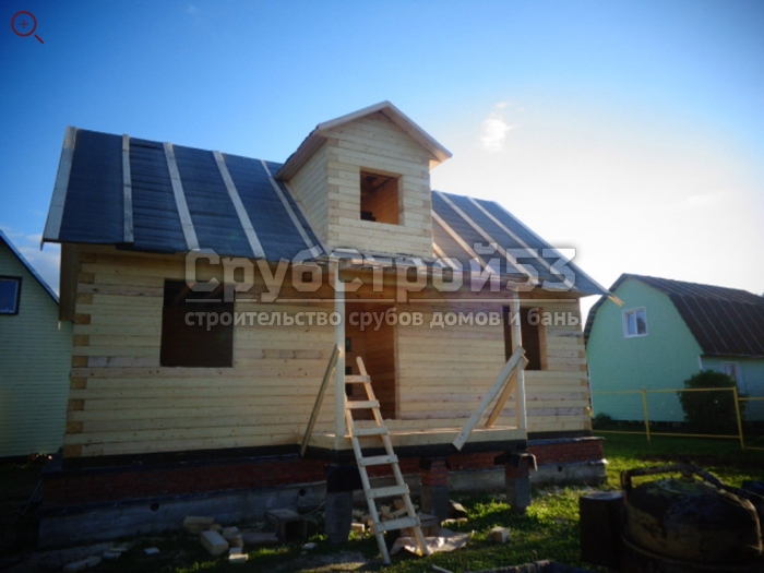 Сруб дома 6х9 из профилированного бруса 200х150 с кукушкой брусовой и открытой террассой 1.5х3.0. Построен: Калужская область, Бабынинский район, д. Семыкино Цена: 610 000 рублей.