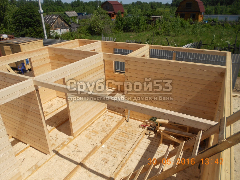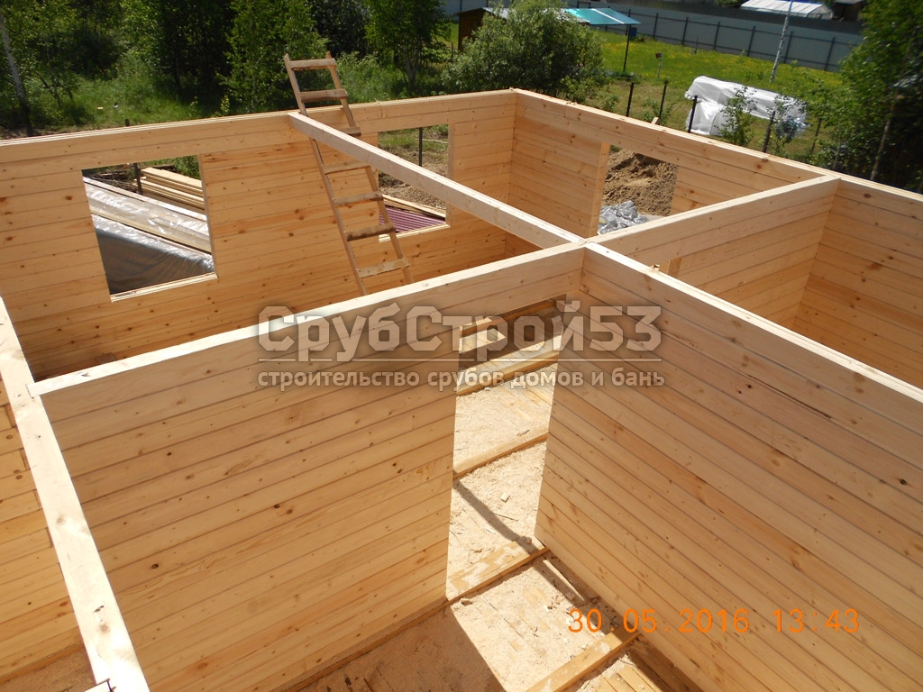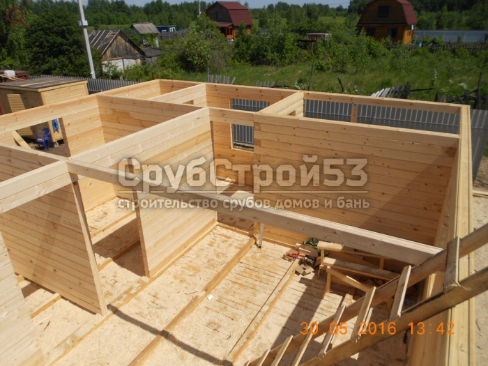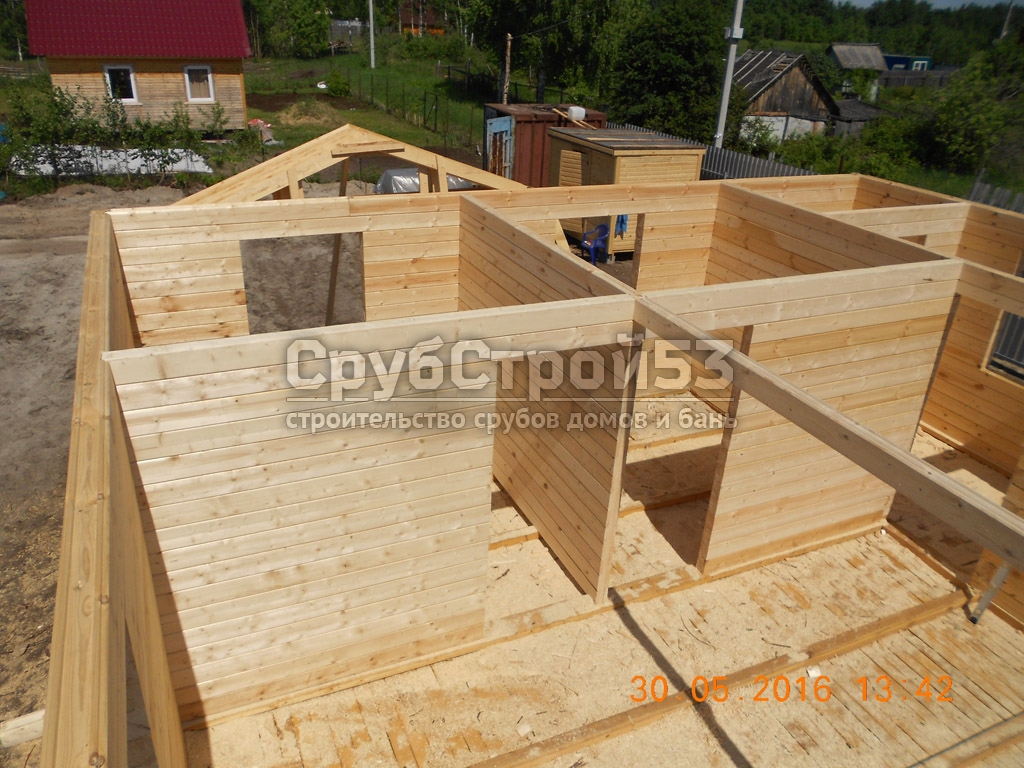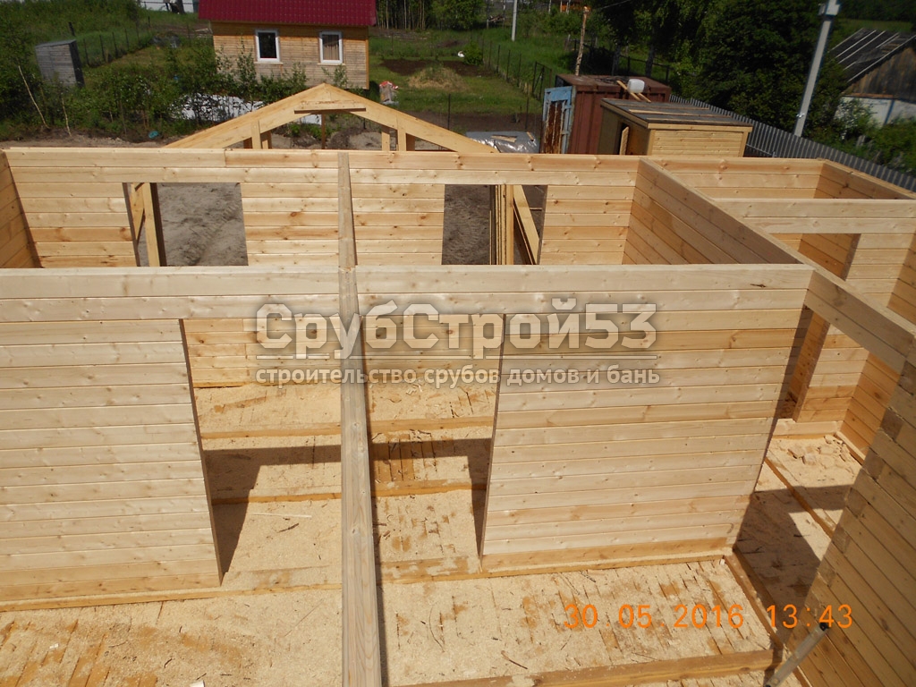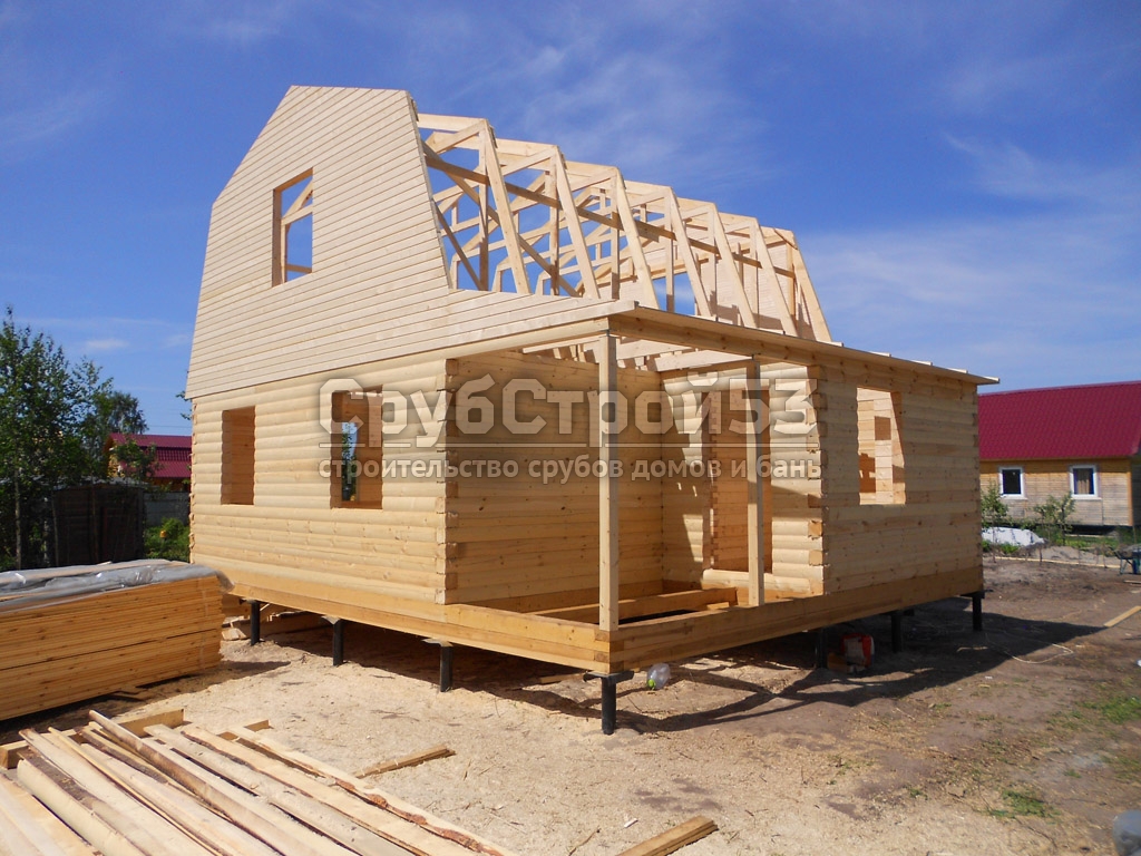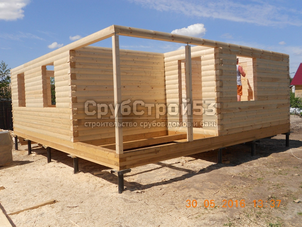 Сруб дома 8х7 м. из профилированного бруса 100х150.