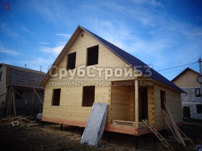 Двухэтажный дом 8,0х8,0 из профилированного бруса 150х150 под двухскатной крышей. Построен в Московской области, Раменский р-н, д. Кузнецовское.