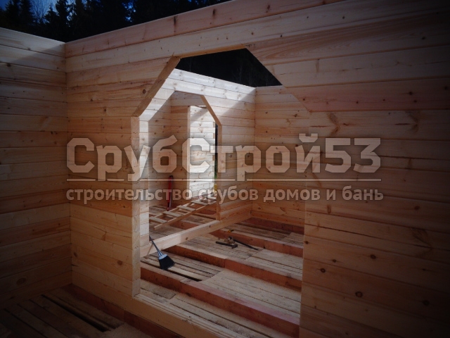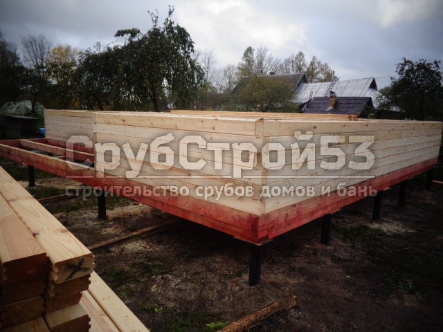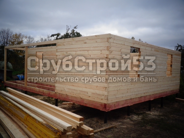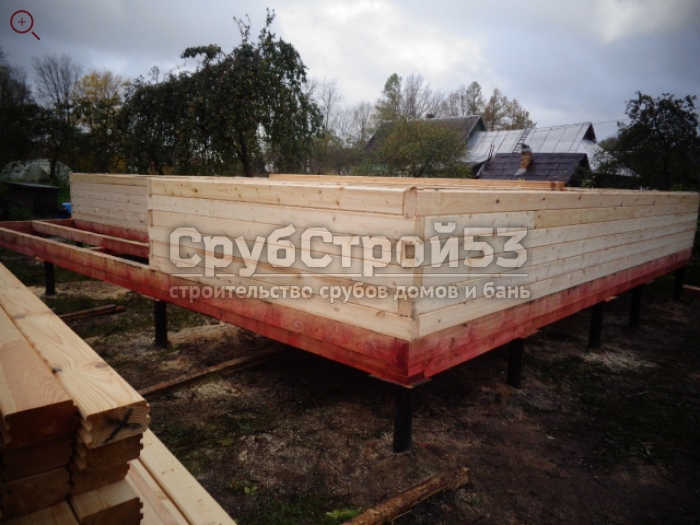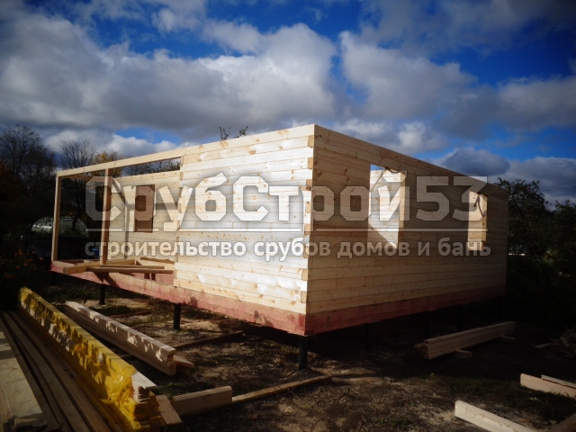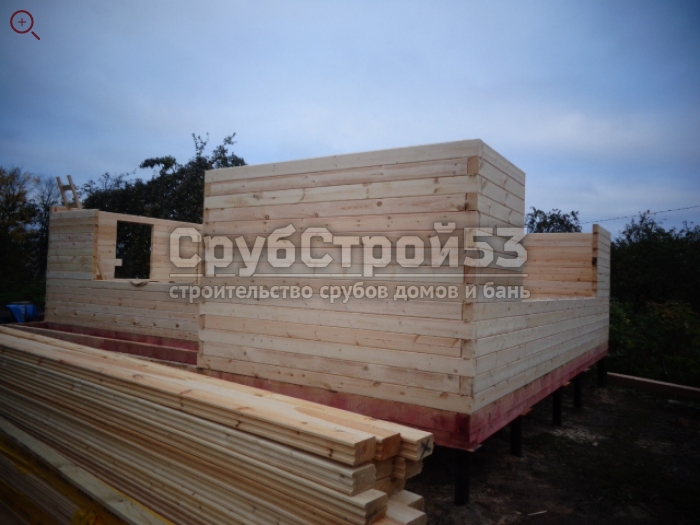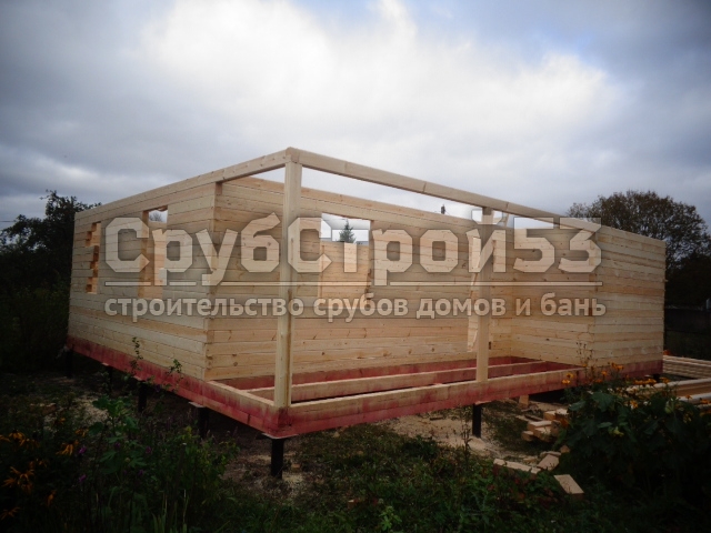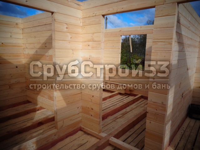 Сруб дома 9х7 м. из профилированного бруса 100х150.