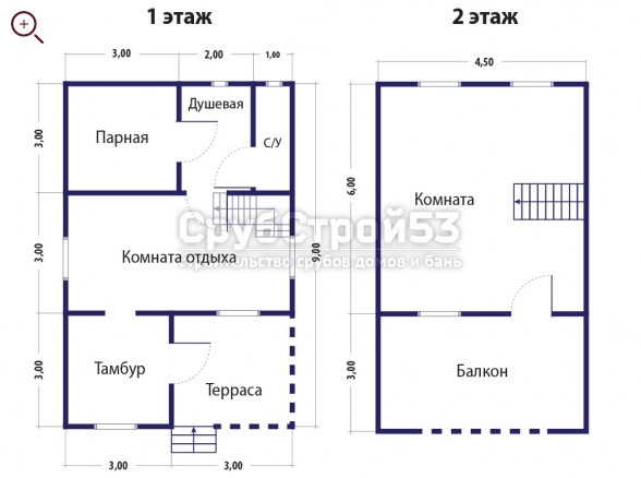 Высота фронтона Одноэтажная баня 1,20 - 1,50 м.