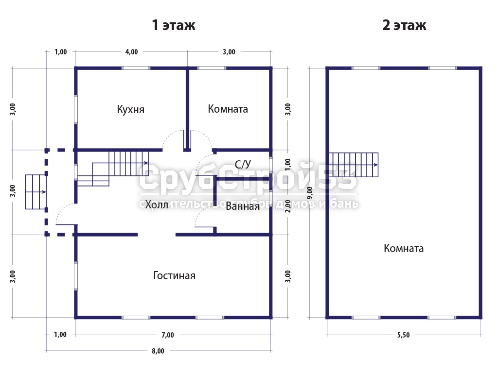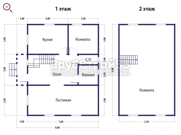 Кирилл. Сруб дома из бруса «Под усадку» 7х9 м.